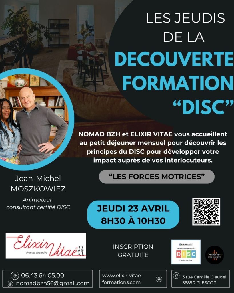 Retrouvez Jean-Michel MOSZKOWIEZ le 23 avril de 8h30 à 10h30 pour aborder La deuxième étape du DISC sur le thème des Forces Motrices.